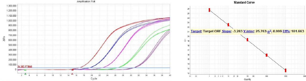 以 Hela 細胞 cDNA 為模板,按10倍濃度梯度稀釋,根據 Ct 值構建標準曲線。結果顯示,GenStar #A301 擴增效率高、標準曲線線性范圍寬、重復性好。