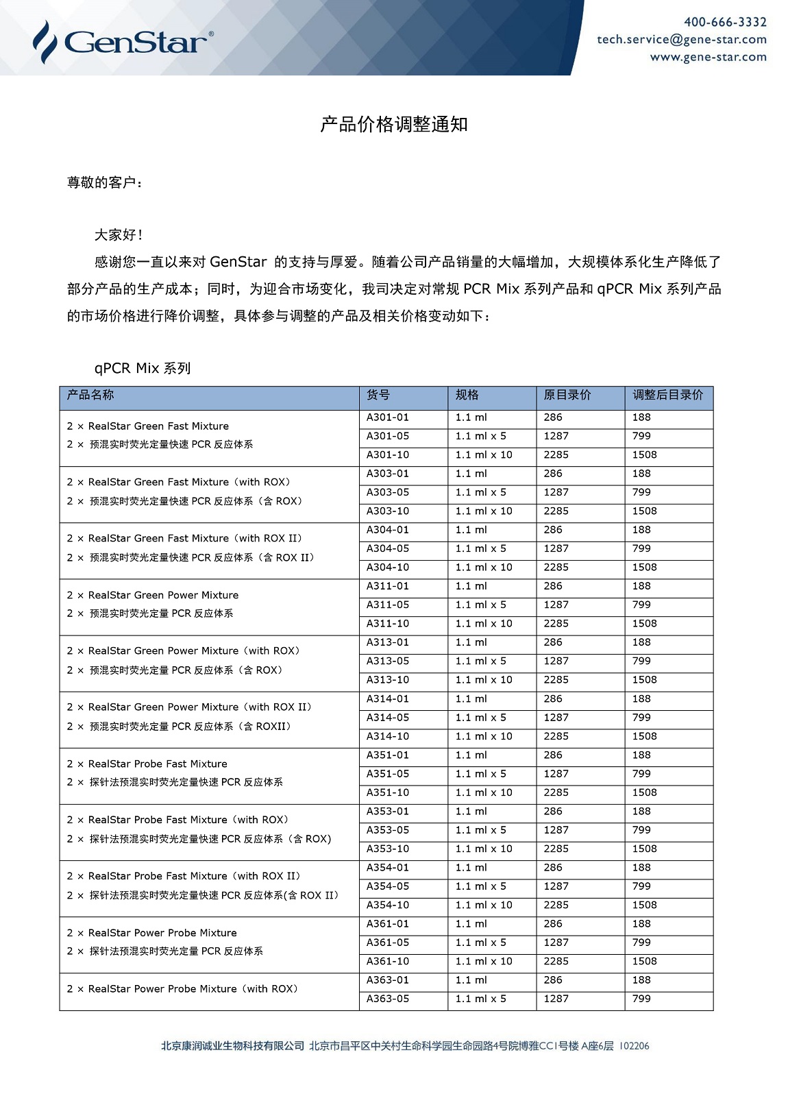 產(chǎn)品價(jià)格調(diào)整通知