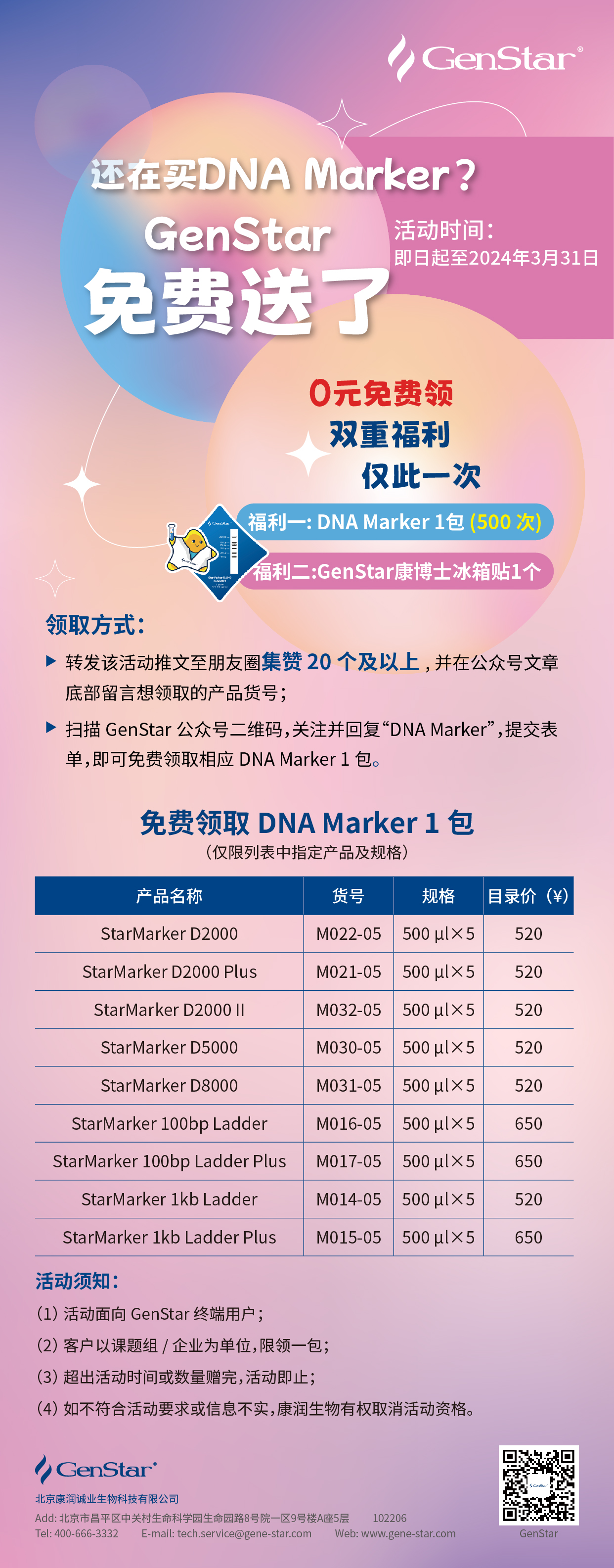 福利來(lái)襲 | 還在買(mǎi)DNA Marker?GenStar免費(fèi)送了!